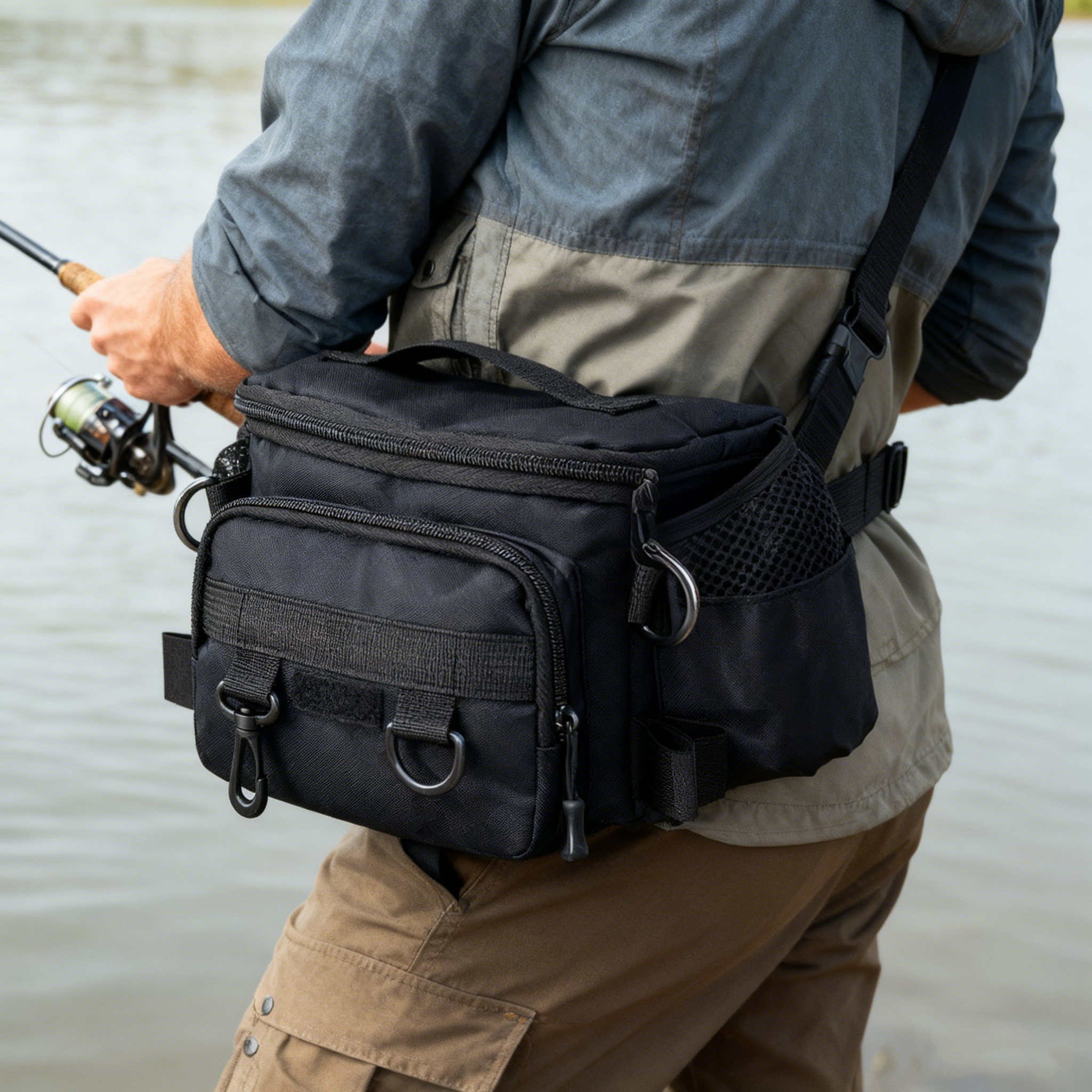 Stylish IPX7 IPX8 Waterproof Fishing Rod Fly Lure Tackle Bag Waterproof Fishing Fanny Pack Shoulder Fishing Bags Backpacks -
