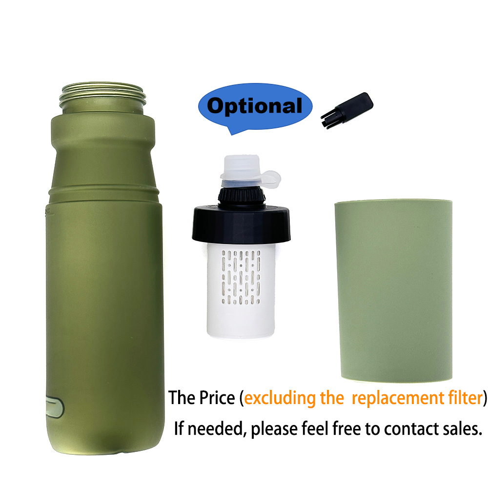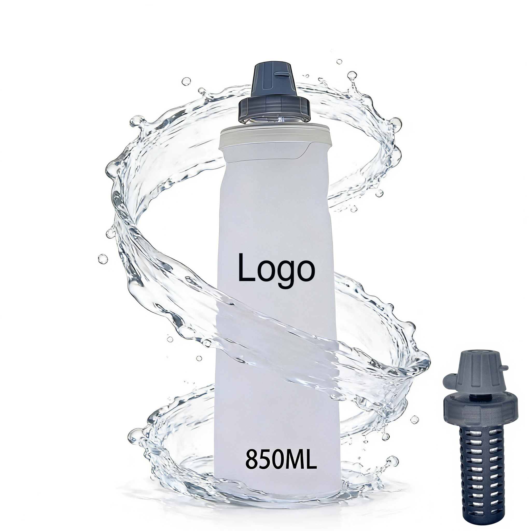 Eco-friendly Lightweight Foldable Reusable TPU Water Bottle with Replacement Filter Kettle Emergency Survival Gear Soft Flask -